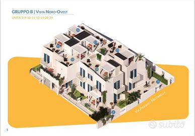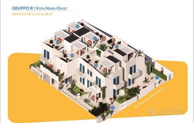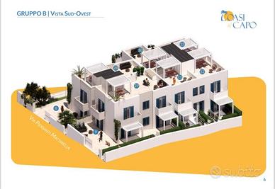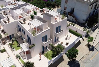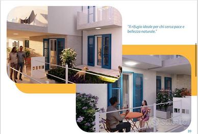 Rif:026 (114134115) - Studio immobiliare Rita, propone a circa 800 metri della meravigliosa spiaggia di San Vito Lo Capo, appartamenti all'interno di un residence in fase di costruzione. L'intero complesso residenziale si affaccia su via Piersanti Mattarella, via dell'Altipiano e via Savoia. È composto da più unità immobiliari, ubicate, sia al piano terra che al piano primo. Gli appartamenti saranno suddivisi in due tipologie i Simplex ed i Duplex. I Simplex sono tipologie di appartamenti che si sviluppano su un solo piano, possono essere ubicati al piano terra e dotati di pertinenza esterna o ubicati al piano primo con accesso esclusivo al terrazzo. Gli appartamenti di questa tipologia sono composti da cucina soggiorno, disimpegno, due camere da letto, due bagni e spazio esterno (veranda o terrazzo). I Duplex invece sono tipologie di appartamenti che si sviluppano su due piani, sono dotati di pertinenza esterna al piano terra ed accesso esclusivo al terrazzo, tramite scala interna. Il piano terra è composto da cucina soggiorno, disimpegno e bagno, mentre il piano primo, al quale si accede mediante scala interna, da due camere da letto, disimpegno, bagno e balconi. L'intero residence è dotato di cappotto termico, impianto fotovoltaico, infissi in pvc a taglio termico, riserva idrica e posti auto. Possibilità di definire il proprio appartamento in base al capitolato offerto dal costruttore e di modificarlo, trasformandolo in 2 monolocali. Il Prezzo varia per ogni singolo appartamento ( € 290.000,00 a € 330.000,00) trattabili. Per qualsiasi informazione non esitate a contattare il - Classe: A4 - IPE: 175.00 kWh/mq anno
