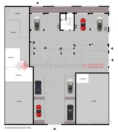 Posti auto scoperti e coperti e cantinole al piano seminterrato.