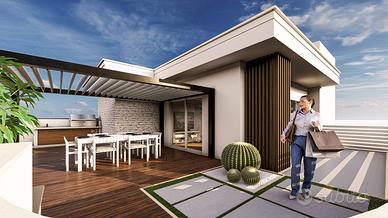 Colleferro - Via delle Querce - L'immobiliare Progetto Casa 1 propone in vendita un attico in costruzione posto al piano secondo con ascensore di circa 80 mq. L'alloggio è composto da un salone con angolo cottura, due camere da letto, due bagni ed un terrazzo di circa 150 mq. Nel prezzo è incluso anche un box auto di circa 20 mq. La residenza condominiale è munita di impianto fotovoltaico per le utenze condominiali (ascensore, luce scala, ecc.) e per la produzione dell'acqua calda per ogni singolo appartamento. L'impianto di riscaldamento e raffrescamento ad aria è garantito dalla pompa di calore. Finiture di pregio APE A++