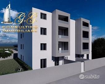 Gli appartamenti saranno così composti : salone e cucina open space , ripostiglio, balconi e terrazzino ,3 camere da letto e doppi servizi, box auto doppio .