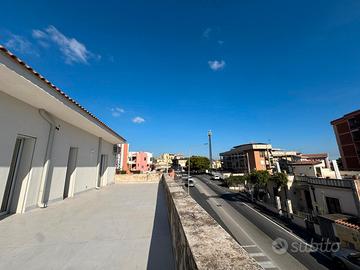 Il secondo appartamento, esposto a sud/est, presenta una superficie lorda coperta di circa 145 mq e una terrazza unica che si estende su due lati per circa 80 mq, con una suggestiva vista sul golfo di Catania. Al suo interno si trova un ampio open space soggiorno-cucina, tre camere da letto, due bagni ed una lavanderia.