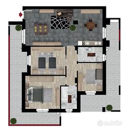 -Tipologia D mq. 130 cosi suddivisa: ampio soggiorno + cucina open space, 3 camere da letto, 2 bagni, ampie balconate.