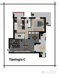 ULTIMA DISPONIBILITA' Appartamento Tipologia "C" di mq. 111 composto da un ampio soggiorno + cucina open space, 2 camere da letto, 2 bagni, ampie balconate.
