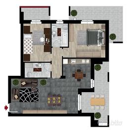 -Tipologia C mq. 111 cosi suddivisa: ampio soggiorno + cucina open space, 2 camere da letto, 2 bagni, ampie balconate.
