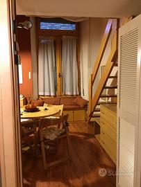 Appartamentino comodissimo a 100 metri dalla stazione autobus di Bormio , un letto matrimoniale nel soppalco , un divano letto doppio nel soggiorno, bagno , armadio con metà parte attrezzata a cucinino , completo di piastre elettriche , stoviglie , pentole , posate , frigorifero , forno a microonde , due televisori , aspiretta , coperte , su richiesta lenzuola asciugamani strofinacci . Libero dal primo febbraio