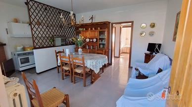 Appartamentino panoramico, ammobiliato, abitabile, con entrata indipendente, con giardino condominiale. Composto da: Sala, cucinino, ingresso, camera, cameretta, bagno, balcone. Completano la proprietà cantina, garage e piccola corte esclusiva. Superficie catastale totale 85 mq.
