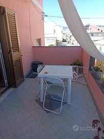 A Ganzirri ben collegato con l' università di Papardo, affitto grazioso appartamentoino composto da soggiorno con divano letto matrimoniale tavolo pranzo armadio, mobili contenitori, cucinotto,bagno con lavatrice sgabuzzino , terrazzo.Si trova al primo piano di una palazzina privata, è climatizzato ,senza spese condominiali Si affitta da subito fino a gugno Il prezzo è comprensivo di acqua e tari.