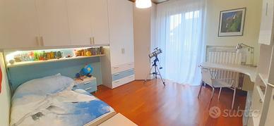 Appartamento di 110mq luminoso e silenzioso in zona residenziale riservata. Dotato di 3 camere, 2 bagni, 3 balconi, affaccio su bosco, ampio garage di 40mq per 2 auto e soffitta pavimentata. Ottime finiture, parquet su zona giorno e zona notte, portone blindato, doppi vetri termici. Riscaldamento autonomo con caldaia a condensazione. L'appartamento fa parte di una palazzina di 4 unità abitative su due piani senza condominio. L'appartamento è pronto ad essere abitato senza necessità di interventi.
