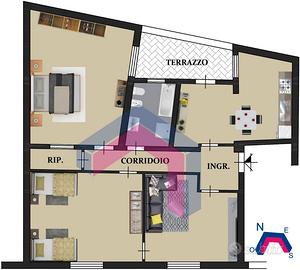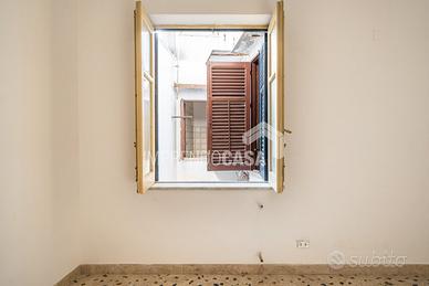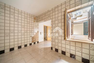 L'appartamento, da ristrutturare, è composto da: ingresso, cucina abitabile, soggiorno, ampia camera matrimoniale, camera, servizio con vasca e box doccia, ripostiglio e chiostrina interna.