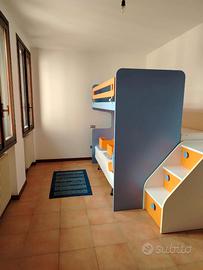 Si vende una porzione centrale su condominio... L'appartamento ha l'ingresso indipendente al piano terra, entrando si trova, cucina e soggiorno open space, una stanza adibita a cameretta e un bel bagno spazioso con box doccia. Salendo le scale si accede alla zona notte e troviamo un ulteriore bagno (con vasca), una generosa cameretta e una camera matrimoniale con balcone. 2 posti auto nel parcheggio condominiale e ampia cantina nell interrato ... Riscaldamento autonomo Spese condominiali 50 € al mese Per info chiamare Devis 329 2783933
