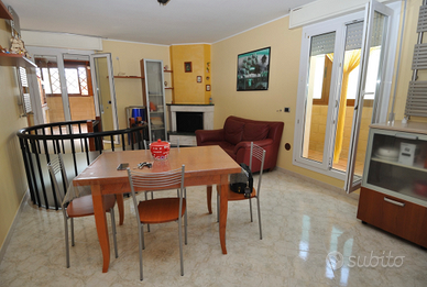 Appartamento subito abitabile su due piani , composto da terzo piano e piano superiore ciscuno con ingresso indipendente e porta blindata, con terrazze di proprietà. Al piano terzo con accesso dall'ascensore si accede al soggiorno - pranzo ed annesso angolo cottura con porta doppia scorrevole(attualmente utilizzata come studio) e zona notte composta da ampio bagno con doccia idro, tre camere da letto e balconi con accesso dalla stanza matrimoniale e dalla stanza doppia. Attraverso la scala esterna, l'ascensore o la scala a chiocciola interna si accede all'ampia lavanderia (35m²) con annesso angolo cottura e wc posta al piano superiore. Dalla stessa attraverso due porte si accede alle terrazze esterne (64m²) di proprietà ed abitabili. Possibilità di acquistare contestualmente il box auto doppio di 25m²(25000 euro).