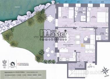 Ampia zona giorno con vista incomparabile, due camere, due bagni, ripostiglio.