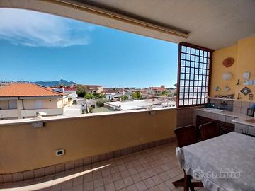 Appartamento di 85mq Sabaudia con vista Monte Circeo, secondo piano di una palazzina di 3 piani del 2010 composto, in mq netti, da soggiorno (25mq), cucina (6mq), 2 camere (14mq e 12mq), 2 bagni (uno con vasca e l'altro con doccia), terrazzo abitabile (20mq) attrezzato con caminetto e lavandino e balcone con lavatoio (18mq).