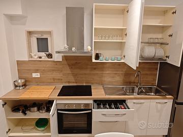 L'appartamento è completamente ristrutturato ed ammobiliato, mai abitato, dotato di bagno con ampio box doccia, ampia cucina completamente attrezzata (inclusi elettrodomestici, stoviglie, pentole, divano letto, ecc.), ripostiglio, vano lavanderia con lavatrice e lavatoio, ampia camera da letto con letto matrimoniale, armadio, comò e specchiera. L'appartamento ha impianto di riscaldamento autonomo a gas con radiatori e 2 climatizzatori caldo/freddo.