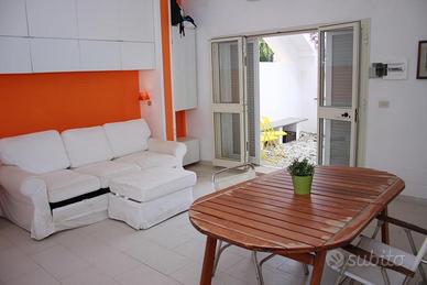 Appartamento piano terra in villino quadrifamiliare 200 metri dal mare ,camera matrimoniale,cameretta ,bagno soggiorno con divano letto e cucina.Patio con accesso riservato