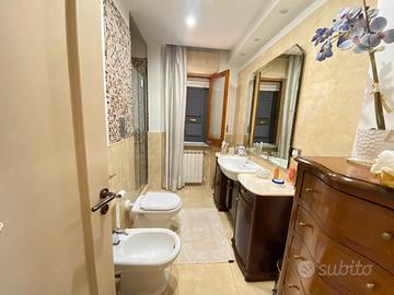 Ingresso in salone doppio di rappresentanza, sala da pranzo con confortevole angolo cottura, quattro camera da letto di cui quella principale possiede la cabina armadio, tre accessori, lavanderia, ripostiglio, balconata perimetrale per tutti e quattro lati dell'immobile; Ed a completare la soluzione, abbiamo DUE BOX AUTO di proprietà + DUE Posti Auto scoperti nell'area condominiale.