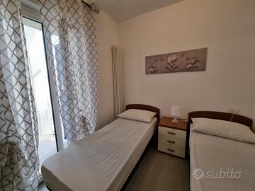 L'unità delle dimensioni interne pari a 60 mq circa oltre ampio balcone, si presenta così suddivisa: ingresso su soggiorno, camera matrimoniale grande, cameretta con due letto singoli, bagno finestrato con cabina doccia, impianto di riscaldamento e impianto di climatizzazione.