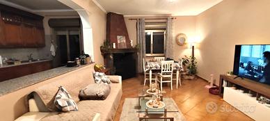 Appena entriamo ci accoglie un ampio e luminoso soggiorno con camino, che affaccia su un cucina abitabile a vista da cui si accede al balcone che co offre una bella vista, proseguendo nella zone notte tramite un comodo disimpegno troviamo tre camere da letto luminose. Infine il bagno, in ottime condizioni e con una comoda doccia. Dietro lo stabile di cui fa parte l'appartamento c'è la possibilità di un parcheggio condominiale, inoltre a parte c'è la possibilità di acquistare un box auto di circa 30 mq. ad un prezzo di € 16.000.