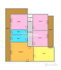- Composizione: 3 camere da letto, 2 bagni, soggiorno, cucina abitabile