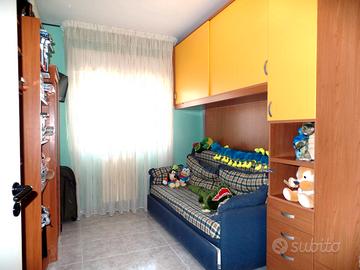 In zona mercato di San Giorgio Ionico pese di passaggio della provincia di Taranto e confinante con Carosino, Roccaforzata, Monteiasi, Monteparano e la stessa Taranto proponiamo appartamento in residence, PANORAMICO, posto al 6 piano di 4 vani + acc.ri + p.auto cosÏ composto: ingresso soggiorno, subito vicina la cucina abitabile con affaccio sul balcone e il bagno di servizio con doccia. Proseguendo per il disimpegno troviamo il bagno patronale con vasca e tre comode camere da letto. L'appartamento oltre ad avere infissi con vetrocamera, dispone di impianto di riscaldamento autonomo, climatizzatori, tende da sole e il posto auto recintato. Classe energetica: F