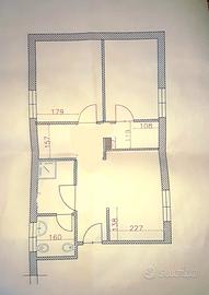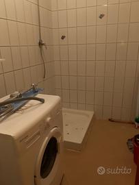 un piccolo bagno con water, bidet e bidet, un antibagno con doccia e lavatrice, cucina e 2 stanzini aperti, come detto 2 camerette singole.