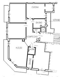 L'immobile si trova al terzo piano, ha una metratura complessiva di 183 mq ed è composto da un ingresso, un ampio e luminoso salone con balcone angolare ed esposizione a ovest, un disimpegno che porta in una zona dove troviamo una camera da letto matrimoniale con balcone e bagno padronale finestrato, ed un altro bagno di servizio. Dall'ingresso si va verso un altra zona composta da cucina abitabile con accesso su un balcone verandato, zona lavanderia, due camere da letto ampie di cui una con balcone ed un altro servizio finestrato.