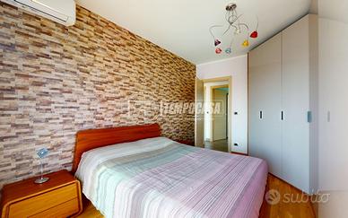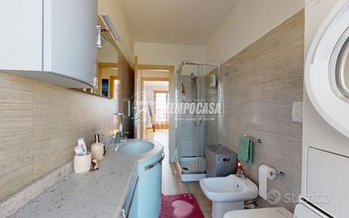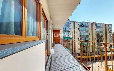 Internamente la zona giorno ci accoglie su un ampio soggiorno e una cucina abitabile, mentre la zona notte è composta da due bagni (uno con vasca e uno con doccia), tre camere da letto e un pratico ripostiglio. Ogni locale offre accesso diretto ai due balconi, che si estendono lungo l'intera facciata dell'appartamento.