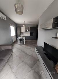 Fittasi appartamento 77mq in villetta privata 1 piano Nuova costruzione Completamente arredato con mobili nuovi Cucina open space 2 camere da letto 1 bagno Ripostiglio 2 balconi Molto luminoso Riscaldamento automo Climatizzato Posto auto interno Nota: annuncio rivolto a studenti e/o operai trasfertisti