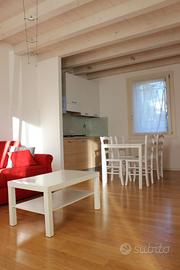 Affittasi appartamento di 60 m^2 in stabile dell'800 completamente arredato, ristrutturato di recente, classe energetica B, solare termico, riscaldamento a pavimento, aria condizionata, zona giorno con cucina completa di lavastoviglie, forno e sala con divano letto matrimoniale. Piccolo bagno di servizio, camera matrimoniale e secondo bagno con lavatrice. Scoperto esclusivo piastrellato di 29 m^2, posto auto scoperto di proprietà di 16 m^2. A pochi passi dalla stazione dei treni, ad 1 km da piazza dei Signori, vicino ospedale. Basse spese condominiali (30/40 €) Contratto a canone concordato. Libero dal 1° agosto. Richiesta mensile € 850. Polizza assicurativa a carico dell'inquilino. Solo per referenziati con redditi dimostrabili.