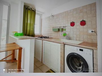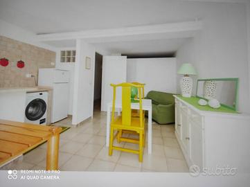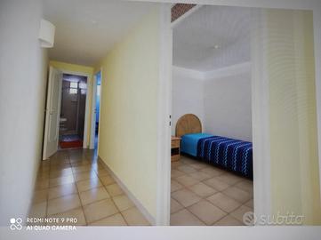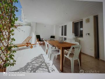 appartamento vicinissimo al mare, dislocato al piano seminterrato, dispone di ampia veranda coperta antistante con doccia, ingresso-soggiorno con angolo cottura, due stanze da letto matrimoniali, una stanza singola con affaccio su zona giorno, w.c. - dotato di aria condizionata