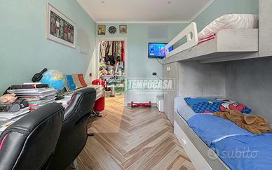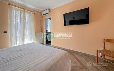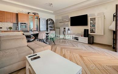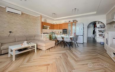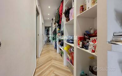 Ingresso su ampio salone con angolo cottura, corridoio che conduce alla zona notte con due camere da letto, di cui una dotata di bagno privato e porta-finestra che da' sul balcone, e secondo bagno anch'esso con porta-finestra che affaccia sul balcone.