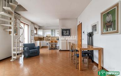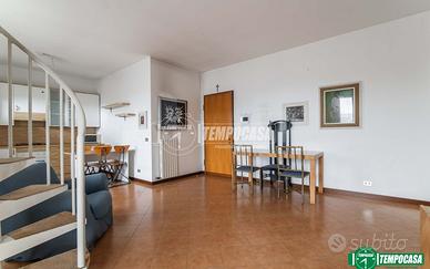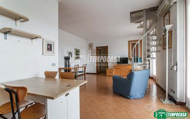 In ottima posizione, servita da negozi, fermate autobus e parchi giochi, l'appartamento è situato all'ULTIMO PIANO di un tranquillo e signorile edificio anni '90 ben curato e con finiture in klinker La particolarità dell'immobile è che si sviluppa su due livelli con doppio ingresso che permette di accedere facilmente sia alla zona giorno che alla zona notte. Il cuore dell'appartamento è il soggiorno, ampio e accogliente, con funzionale cucina a vista e uscita su un TERRAZZO di 15 mq che affaccia all'interno sul verde condominiale. Al piano abbiamo inoltre il bagno finestrato con un pratico disimpegno comodo per essere attrezzato con un armadio ripostiglio. La zona notte è al piano superiore mansardato collegato internamente da una scala a chiocciola. La mansarda ha la predisposizione per un bagno/lavanderia. A completare la proprietà, un'ampia cantina e un box auto privato. L'immobile dispone di video citofono, aria condizionata e riscaldamento autonomo. LIBERO SUBITO Chiamaci per fissare un appuntamento o scrivici su Whatsapp 340.5939.202 - Classe: D - IPE: 143.00 kWh/mq anno