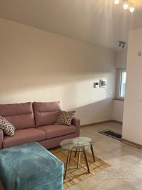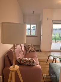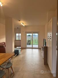L'appartamento è composto da ingresso accogliente, soggiorno open space con cucina moderna attrezzata (forno elettrico, piano cottura a induzione, microonde), ampia camera matrimoniale arredata con gusto contemporaneo, cameretta ideale per bambini o come studio privato e servizio raffinato. Gli ambienti sono arredati con mobili nuovi e confortevoli; la zona giorno vanta ampie finestre scorrevoli che donano luce naturale agli interni oltre ad accesso diretto al giardino esclusivo antistante.