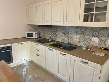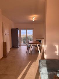 L'appartamento è composto da ingresso accogliente, soggiorno open space con cucina moderna attrezzata (forno elettrico, piano cottura a induzione, microonde), ampia camera matrimoniale arredata con gusto contemporaneo, cameretta ideale per bambini o come studio privato e servizio raffinato. Gli ambienti sono arredati con mobili nuovi e confortevoli; la zona giorno vanta ampie finestre scorrevoli che donano luce naturale agli interni oltre ad accesso diretto al giardino esclusivo antistante.