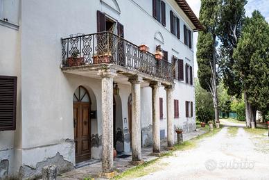 (Riferimento: V9018) ASCIANO PER NOSTRA ESCLUSIVA Vendesi in villa d'epoca in contesto storico della Toscana medievale con accesso da un bellissimo viale alberato, appartamento al piano terra con doppio ingresso di cui uno indipendente, di 80 mq circa composto da: disimpegno, corridoio, ampio soggiorno sala pranzo con angolo cottura e camino con accesso diretto al giardino privato e ad una veranda, camera matrimoniale e bagno e magazzino. Sul retro della villa troviamo un locale comune per i servizi tecnici e resede condominiale. La proprietà è recintata e circondata da un ampio parco ottimamente mantenuto e da un bosco privato.