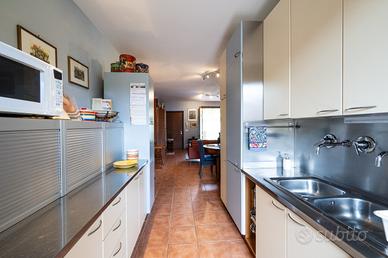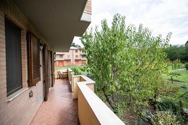 (Riferimento: V9028) ASCIANO VENDESI PER NOSTRA ESCLUSIVA, appartamento al piano primo in ottime condizioni, composto da: ingresso con ampio soggiorno sala pranzo con cucina a galleria, due camere, due bagni, studio dove è possibile ricavare le terza camera e tre terrazze. Annessi al piano terreno garage e cantina con loggia e ampio giardino di pertinenza esclusiva su tre lati.