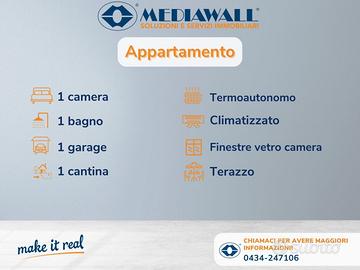(Riferimento: BQ-018-RV) Aviano a pochi passi dal centro (BQ-018-RV): appartamento di nuova costruzione e di generose dimensioni termoautonomo e climatizzato composto da: soggiorno - angolo cottura, disimpegno, bagno, camera matrimoniale, terrazzo, cantina e garage. L'appartamento verrà dotato di riscaldamento autonomo a pavimento con pompa di calore e impianto di climatizzazione, finestre e porte finestre con vetrocamera a basso emissivo. Le finiture saranno a tuo piacimento! Per qualsiasi altra informazione contattaci! Cl. En. A EPgL 35. Le foto sono puramente indicative e non rappresentano lo stato dell'abitazione.