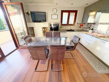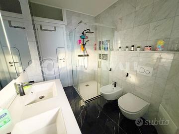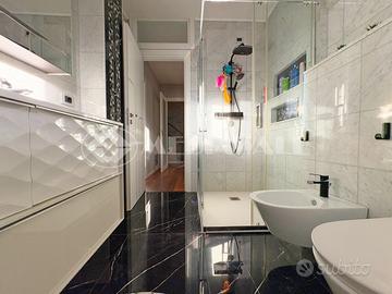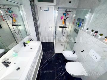 Dotazioni: portoncino blindato, impiantistica riqualificata con conformità, impianto di riscaldamento autonomo con caldaia a metano e impianto a radiatori, termostati dedicati in ogni stanza, pavimenti in laminato, pavimento del bagno in marmo di carrara, serramenti in PVC triplo vetro anta ribalta con zanzariere, terrazzo piastrellato e impermeabilizzato con guaina, soffitto e muri perimetrali coibentati, pred. impianto hi-fi in ogni stanza, pred. telecamere interne in ogni stanza, porte interne riqualificate, bagno riqualificato, predisposizione impianto audio in tutte le stanze e cassaforte.