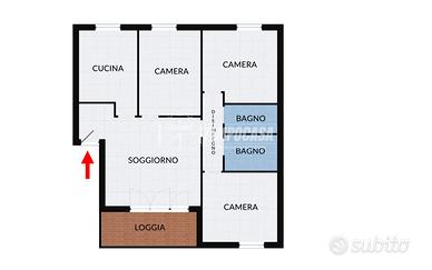 - Ingresso su ampio soggiorno 27,4 m² con accesso diretto alla loggia di 8,2 m²