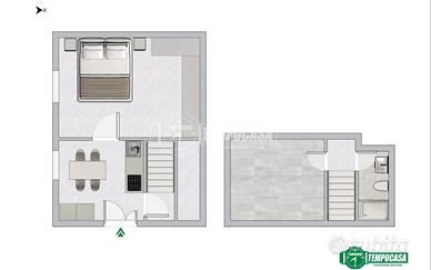 Al piano terra si sviluppa un ambiente unico, attualmente organizzato come zona giorno/notte, mentre al piano seminterrato -- collegato internamente -- troviamo una spaziosa cantina adibita a taverna con servizio.