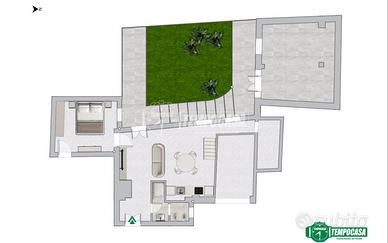 La zona notte è composta da una comoda camera matrimoniale e da un bagno finestrato. Punto di forza della proprietà è il giardino privato di 53 mq, uno spazio esterno raro nel Centro Storico, ideale per momenti di relax o convivialità. Completa la soluzione un ripostiglio esterno di 23 mq, utile come spazio di servizio.