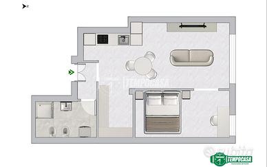 L'immobile presenta un ingresso su zona giorno con angolo cottura e un comodo spazio dedicato al relax.