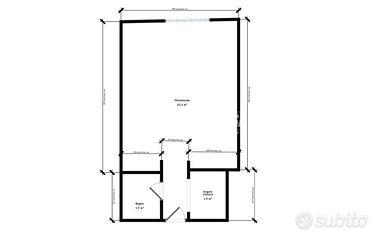 La composizione interna comprende un ambiente unico, bagno e cucinotto separato.