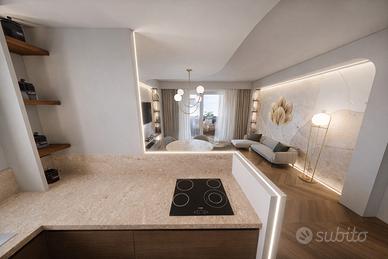 L'abitazione si compone di un soggiorno con angolo cottura e uscita sul balcone, caratterizzato da ampie vetrate che garantiscono ottima luminosità. La zona notte comprende una camera matrimoniale e una cameretta, entrambe con uscita diretta sul terrazzo, oltre a doppi servizi, studiati per offrire comfort e funzionalità. L'immobile gode di triplo affaccio interno, elemento che assicura maggiore tranquillità e riservatezza pur trovandosi in una delle vie principali della città.