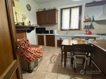 CALCI: Appartamento posto al piano primo di palazzotto con facciata rifatta con ingresso indipendente, in ottimo stato di manutenzione, composto da ingresso, salone doppio di circa 40 mq (dove possibile ricavare la terza camera),cucina abitabile con camino, ripostiglio, disimpegno notte, due camere matrimoniali e doppi servizi, corredato di cantina al piano terra.