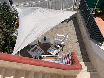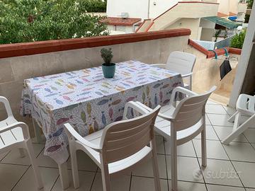 Affitto appartamento a Campomarino di Maruggio composto di camera da letto matrimoniale e cameretta con letto a castello, dotato di stoviglie, pentolame, lavatrice, condizionatore, phon, ventilatore a soffitto. Nel giardinetto c'è doccia esterna.
