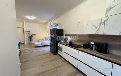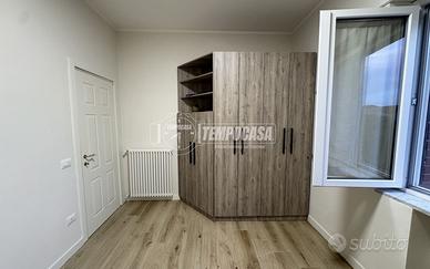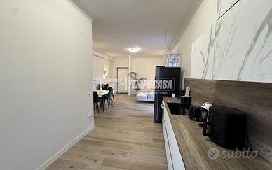 L'ingresso conduce a un ampio e luminoso soggiorno open space con cucina a vista, un ambiente raffinato e versatile che unisce convivialità e design contemporaneo. La zona notte si compone di due camere da letto: una matrimoniale con spaziosa cabina armadio e una seconda camera ideale come cameretta o studio. L'appartamento dispone inoltre di un elegante bagno finestrato con box doccia, rifinito con materiali ricercati e curato nei minimi dettagli.