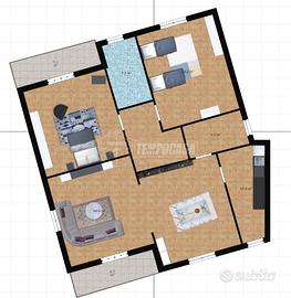 La soluzione è caratterizzata da spazi ampi e ben distribuiti, l'ingresso accompagna in zona giorno composta da salone e cucina; la zona notte ospita due comode camere da letto e il bagno.