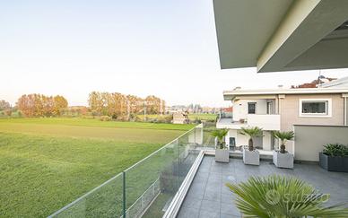 RECENTISSIMO ATTICO CON VISTA PANORAMICA! Non distante dalla piazza principale e dalla ciclabile che costeggia il Naviglio Martesana e dai servizi con la possibilità di raggiungere la zona centrale di Cassano D'Adda in pochi minuti con la propria autovettura, proponiamo in vendita attico di 3 locali di recente costruzione. L'appartamento gode di una libera vista su un ampio terreno, che permette di godere di un'ottima privacy. Grazie al comodo ascensore si accede all'ultimo piano del piccolo condominio di soli due piani, il pianerottolo è condiviso con un solo appartamento; al suo interno è composta da un ampio e luminoso soggiorno con angolo cottura formato da una cucina su misura con piano cottura a induzione e completa di elettrodomestici, grazie alla porta finestra si accede all'ampio e vivibile terrazzo di 35mq, che gira su tutti i locali della casa, dotato di tetto panoramico. Gli infissi della zona giorno sono dotati di frangisole automatizzati mentre sul resto delle finestre della casa ci sono tapparelle anche queste automatizzate. Il comodo disimpegno conduce alla zona notte, con un bagno padronale con box doccia, ed un secondo comodo bagno dotato di wc e lavabo, completano la soluzione la cameretta e l'ampia camera matrimoniale con accesso al balcone. L'abitazione dispone di 3 split dell'aria condizionata (soggiorno e nelle due camere), sistema di VMC (ventilazione meccanica controllata), il riscaldamento è autonomo con propria caldaia ed a pavimento. L'appartamento è rifinito con mobilio di design con possibilità di acquistarlo interamente; ed è completato da un box di 20mq e cantina. L'appartamento verrà libero per fine 2026. - Classe: A - IPE: 63.88 kWh/mq anno