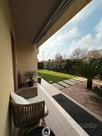 vendo appartamento a Castelfranco Veneto con giardino. l'immobile si compone di cucina con soggiorno open space, 3 camere e bagno. Completa la proprietà un garage nell'interrato. Prezzo 220000 leggermente trattabile. L'immobile viene venduto parzialmente arredato. No agenzie contattare tramite whatsapp no perditempo grazie